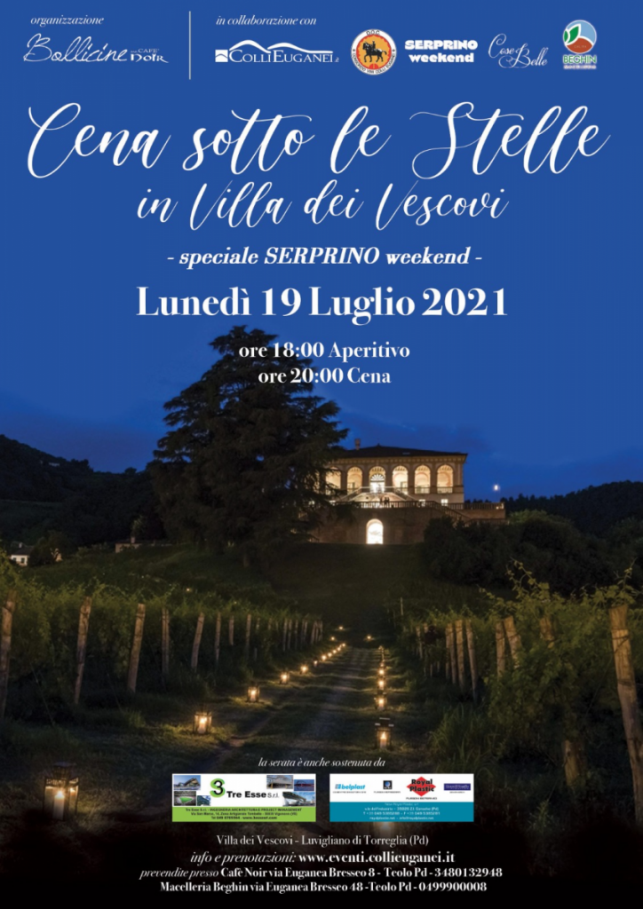 A conclusione della seconda edizione del Serprino Weekend, l'evento diffuso del territorio padovano per la promozione del Serprino, bollicina DOC dei Colli Euganei a Villa dei Vescovi "Cena sotto le stelle".